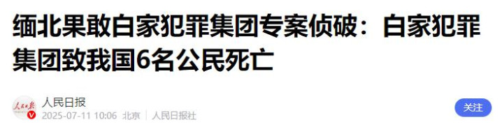 人民日报《缅北果敢白家犯罪集团专案侦破:白家犯罪集团致我国6名公民死亡》