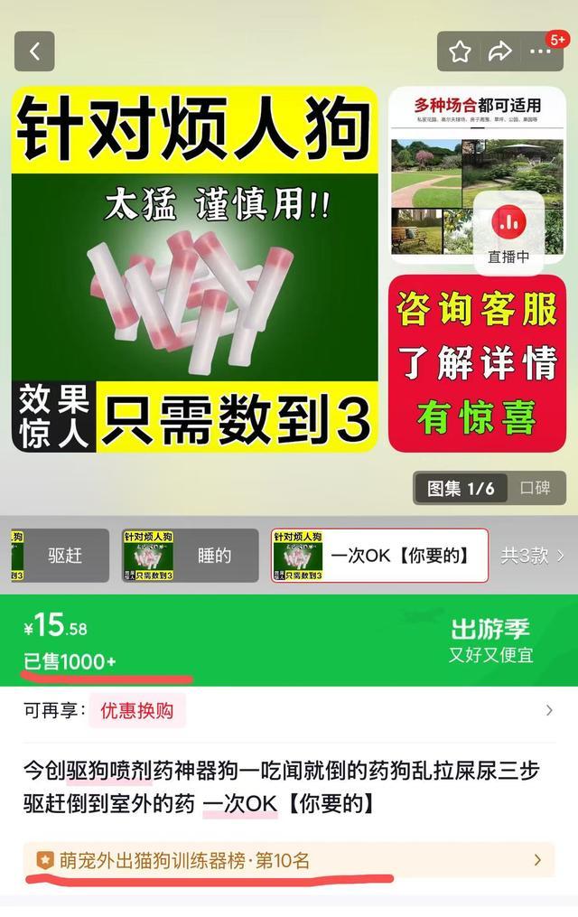 长江云新闻记者以销耗者身份在该电商平台实测,使用“药”“狗”等过失词搜索,页面赶紧出现多家有关店铺,部分商品封面径直标注“恶狗一秒倒”的注释字样。
