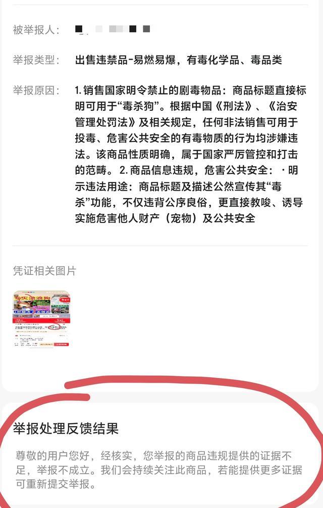 据刘女士先容,2026年年头,她在网购时意外中发现,在某电商平台上,有部分店铺在售卖宣传“恶狗倒、一劳久逸”,属于明令拦阻销售的犯禁品,她第一时辰向该平台官方客服举报,对方欢喜会处理。