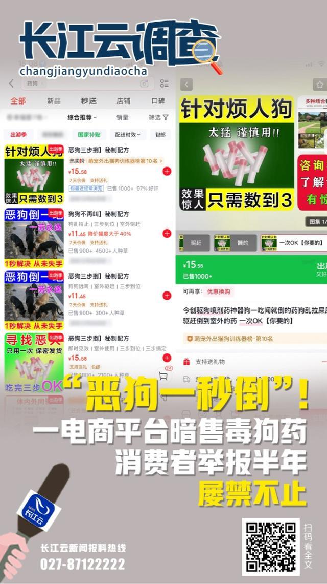 “尽然还敢公开卖毒狗的药!”4月8日,刘女士向长江云新闻热线(027-87122222)响应,她在半年内屡次举报某电商平台内有商家售卖“剧鸩杀狗药”,可到头来,店铺“换个马甲”一经连接售卖,销售量以致破千。对此,长江云新闻记者张开暗访。