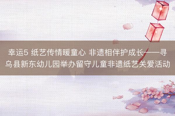 幸运5 纸艺传情暖童心 非遗相伴护成长——寻乌县新东幼儿园举办留守儿童非遗纸艺关爱活动