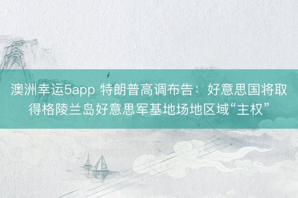 澳洲幸运5app 特朗普高调布告:好意思国将取得格陵兰岛好意思军基地场地区域“主权”