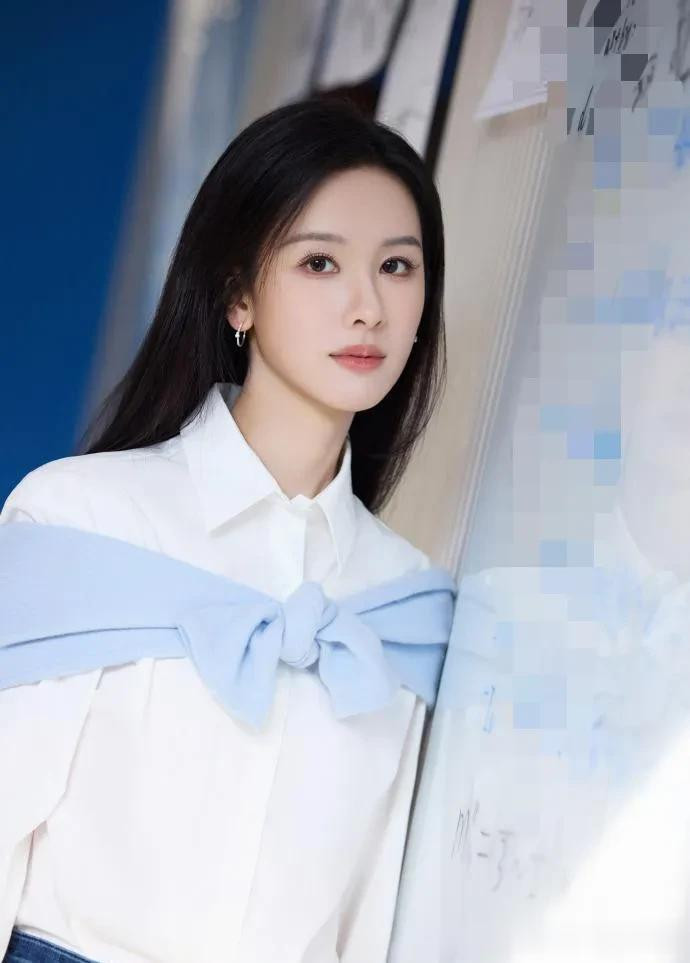 幸运5 陈齐灵确切天生丽质! 白衬衫+蓝色披肩+牛仔裤, 从简又高档!