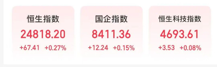 香港恒生指数开盘涨0.27%,恒生科技指数涨0.08%。