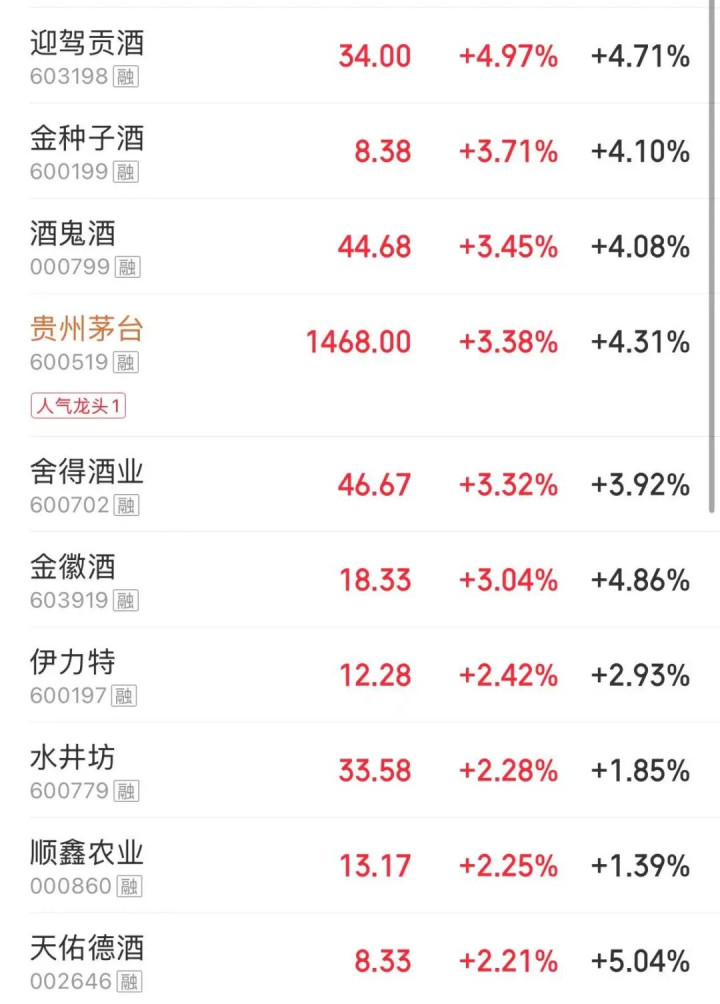 白酒、贵金属等板块指数涨幅居前,开云app官方下载CPO、电力、锂矿等板块指数跌幅居前。贵州茅台高开涨超3%,公司告示上调飞天茅台酒价钱,自营零卖价涨至1539元/瓶。