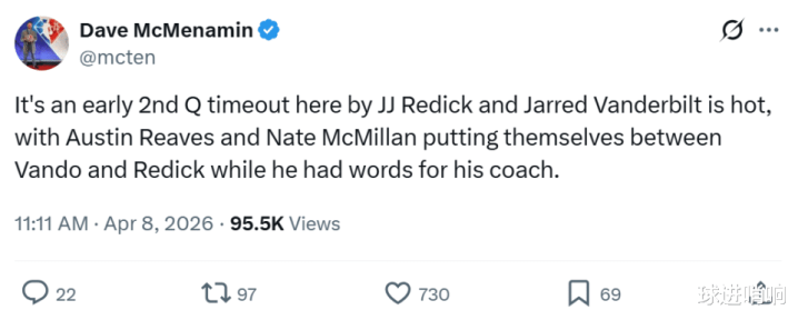 ESPN湖东谈主队记Dave McMenamin跟进曝出里夫斯与助阐述说介入拦住了两边,随后克内克特将范德比尔特换下。
