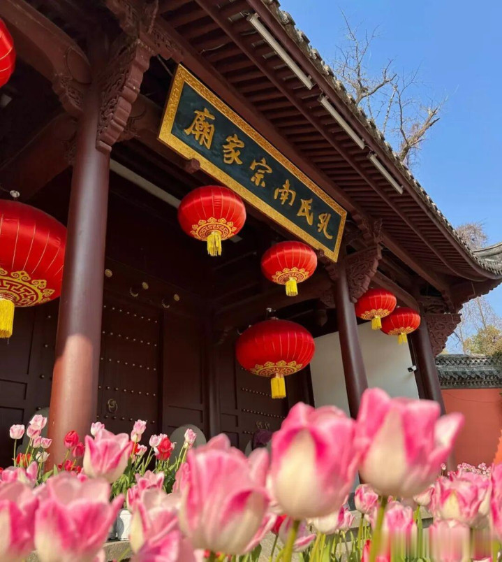 走进孔氏南宗家庙,青砖黛瓦,古柏森森,四月的阳光透过枝桠洒在大成殿前的石阶上,斑驳而安逸。搭配纯净玉兰、粉艳海棠、紫藤垂廊,儒风雅韵与春色会通,极具古风感。