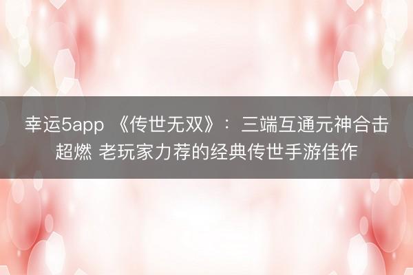 幸运5app 《传世无双》:三端互通元神合击超燃 老玩家力荐的经典传世手游佳作