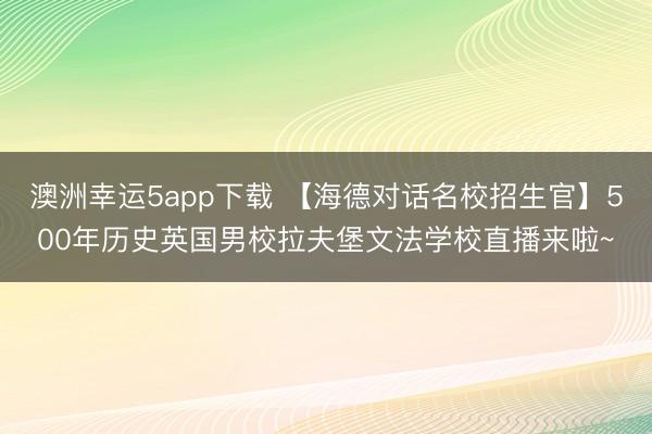 澳洲幸运5app下载 【海德对话名校招生官】500年历史英国男校拉夫堡文法学校直播来啦~