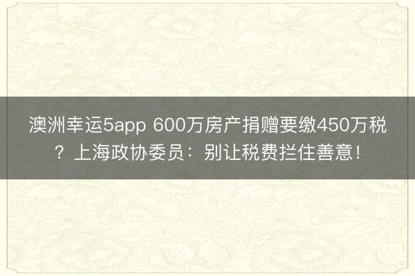 澳洲幸运5app 600万房产捐赠要缴450万税?上海政协委员:别让税费拦住善意!