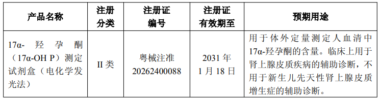 幸运5 普门科技:17α-羟孕酮测定试剂盒取得医疗器械注册证