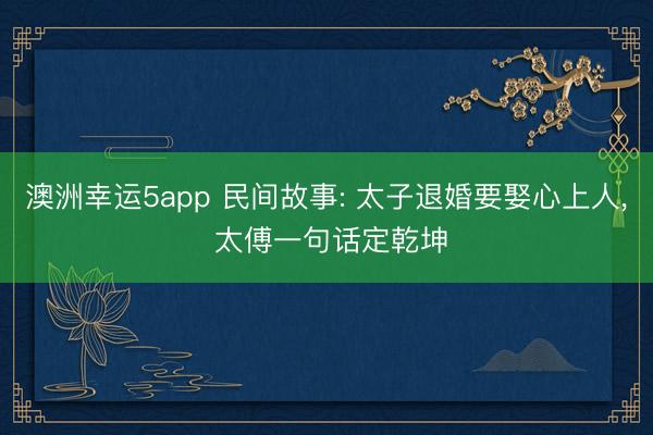 澳洲幸运5app 民间故事: 太子退婚要娶心上人, 太傅一句话定乾坤