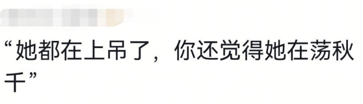 有一位网友形容的很贴切,她都已经在上吊了,你却还觉得她是在荡秋千。
