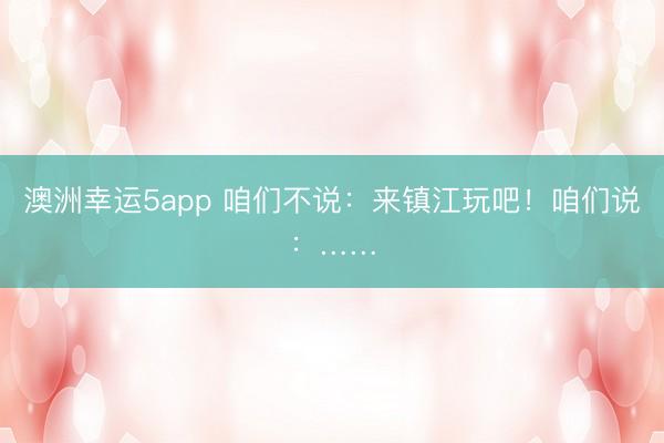 澳洲幸运5app 咱们不说:来镇江玩吧!咱们说:……