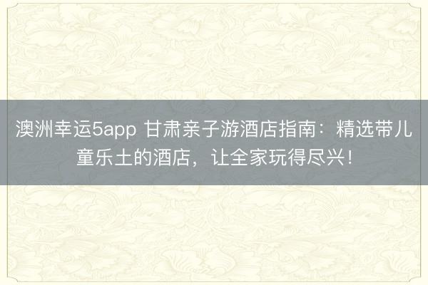 澳洲幸运5app 甘肃亲子游酒店指南:精选带儿童乐土的酒店,让全家玩得尽兴!