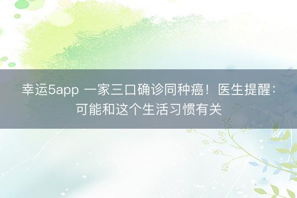 幸运5app 一家三口确诊同种癌!医生提醒:可能和这个生活习惯有关