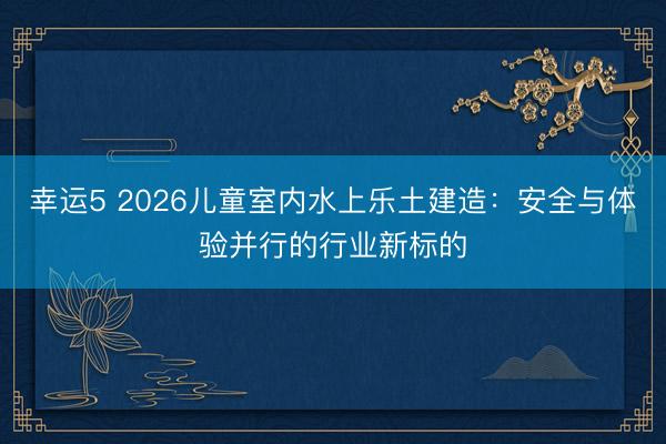 幸运5 2026儿童室内水上乐土建造:安全与体验并行的行业新标的