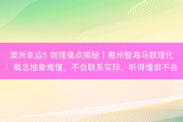 澳洲幸运5 物理痛点揭秘|惠州智海马数理化:概念抽象难懂,不会联系实际,听得懂做不会