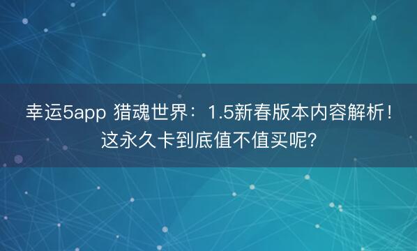 幸运5app 猎魂世界:1.5新春版本内容解析!这永久卡到底值不值买呢?
