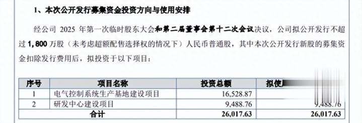 据短平快解读了解,本次IPO,嘉晨智能拟公开拓行不逾越1,800万股,拟召募资金2.6亿元,用于电气约束系统出产基地建树技俩(出产基地)、研发中心建树技俩,拟干涉召募资金鉴识为1.65亿元、0.95亿元。