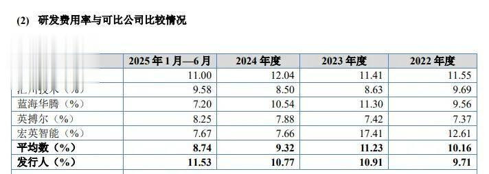 可比同业研发用度率均值鉴识为10.16%、11.23%、9.32%、8.74%,具体到企业,麦格米特、蓝海华腾2024年研发用度率鉴识为12.04%、10.54%,与公司大体颠倒,高于其他同业,颇为嗜好研发干涉。