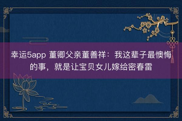 幸运5app 董卿父亲董善祥:我这辈子最懊悔的事,就是让宝贝女儿嫁给密春雷