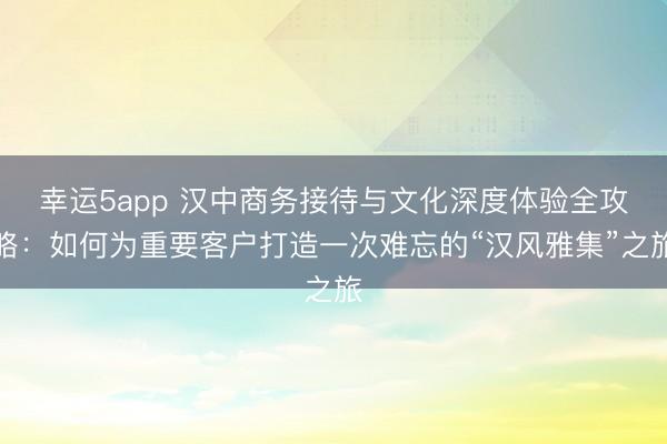 幸运5app 汉中商务接待与文化深度体验全攻略:如何为重要客户打造一次难忘的“汉风雅集”之旅