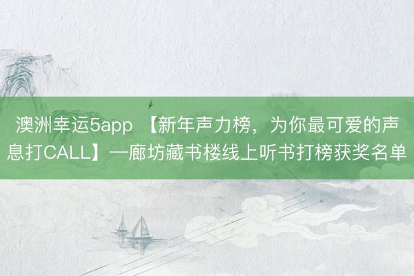 澳洲幸运5app 【新年声力榜,为你最可爱的声息打CALL】—廊坊藏书楼线上听书打榜获奖名单