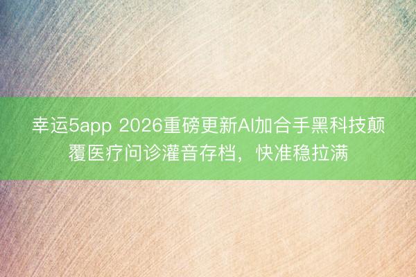 幸运5app 2026重磅更新AI加合手黑科技颠覆医疗问诊灌音存档,快准稳拉满