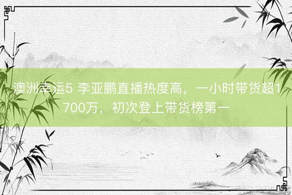 澳洲幸运5 李亚鹏直播热度高,一小时带货超1700万,初次登上带货榜第一