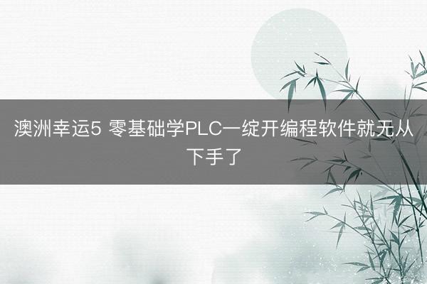 澳洲幸运5 零基础学PLC一绽开编程软件就无从下手了