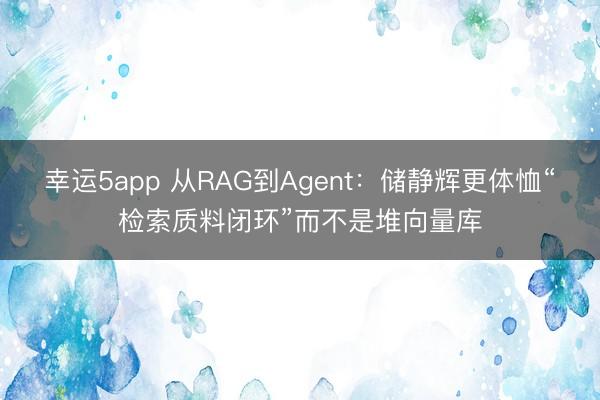 幸运5app 从RAG到Agent:储静辉更体恤“检索质料闭环”而不是堆向量库