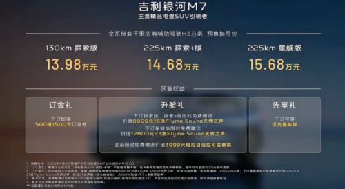 关于家用SUV而言,填塞的能源储备能让超车、爬坡更清静,完善的智驾安全则能为全家出行筑牢防地,这两项中枢实力时常是用户忽略却至关要紧的关节。祯祥星河M7聚焦能源性能与智驾安全两大中枢,以更强的能源参数、更全面的主动避险才调,摧毁家用车能源偏弱、安全竖立不及的常态,让深广驾驶更有信心、资料出行更有保险,这款兼具苍劲性能与智能安全的电混SUV现已负责开启预售。祯祥星河M7本次推出三款竖立车型,预售价钱区间为13.98万元至15.68万元,订价贴合主流家庭购车预算。
