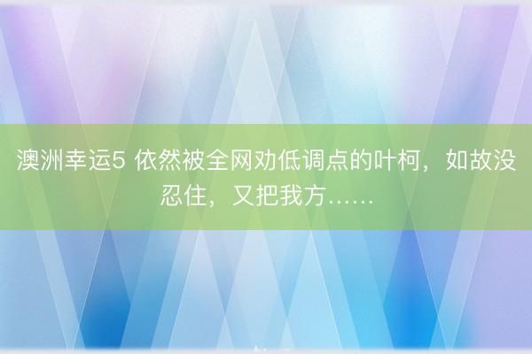 澳洲幸运5 依然被全网劝低调点的叶柯,如故没忍住,又把我方……