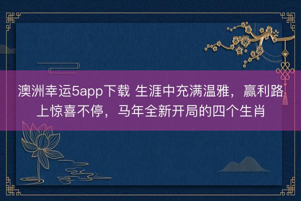澳洲幸运5app下载 生涯中充满温雅,赢利路上惊喜不停,马年全新开局的四个生肖