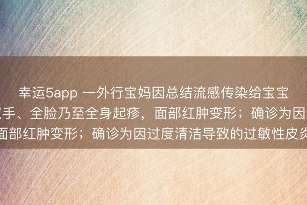 幸运5app 一外行宝妈因总结流感传染给宝宝,每天反复洗手消毒,双手、全脸乃至全身起疹,面部红肿变形;确诊为因过度清洁导致的过敏性皮炎