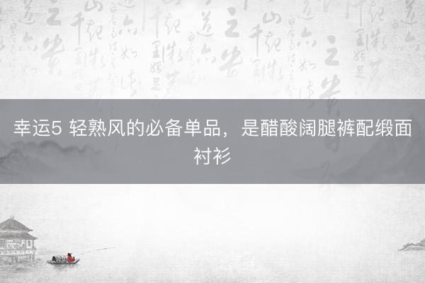 幸运5 轻熟风的必备单品,是醋酸阔腿裤配缎面衬衫