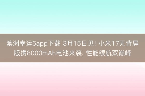 澳洲幸运5app下载 3月15日见! 小米17无背屏版携8000mAh电池来袭, 性能续航双巅峰