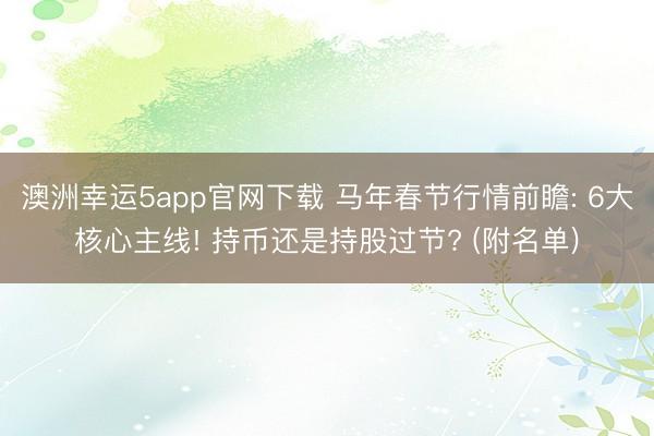 澳洲幸运5app官网下载 马年春节行情前瞻: 6大核心主线! 持币还是持股过节? (附名单)