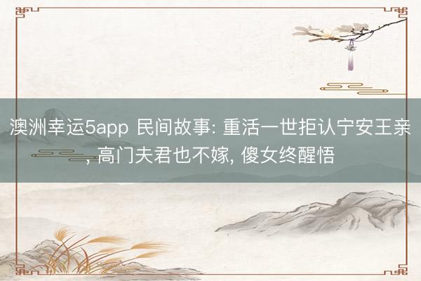 澳洲幸运5app 民间故事: 重活一世拒认宁安王亲, 高门夫君也不嫁, 傻女终醒悟